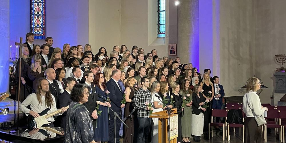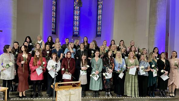 Barnmorskornas examenshögtid ägde rum tillsammans med sjuksköterskornas i den vackra Annedalskyrkan, i enlighet med traditionen för utbildningarna inom omvårdnad. Ceremonin präglades av högtidliga tal, musik och närhet – både på scen och i publiken – där familj och vänner var tätt samlade för att fira de nyblivna barnmorskorna och sjuksköterskorna.
